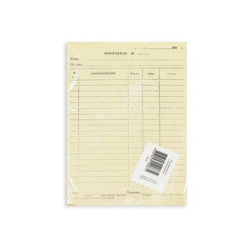Однослойная накладная формата А5 изготовлена из офсетной бумаги. Поставляется в виде книжки по 100 бланков. В упаковке 5 книжек.