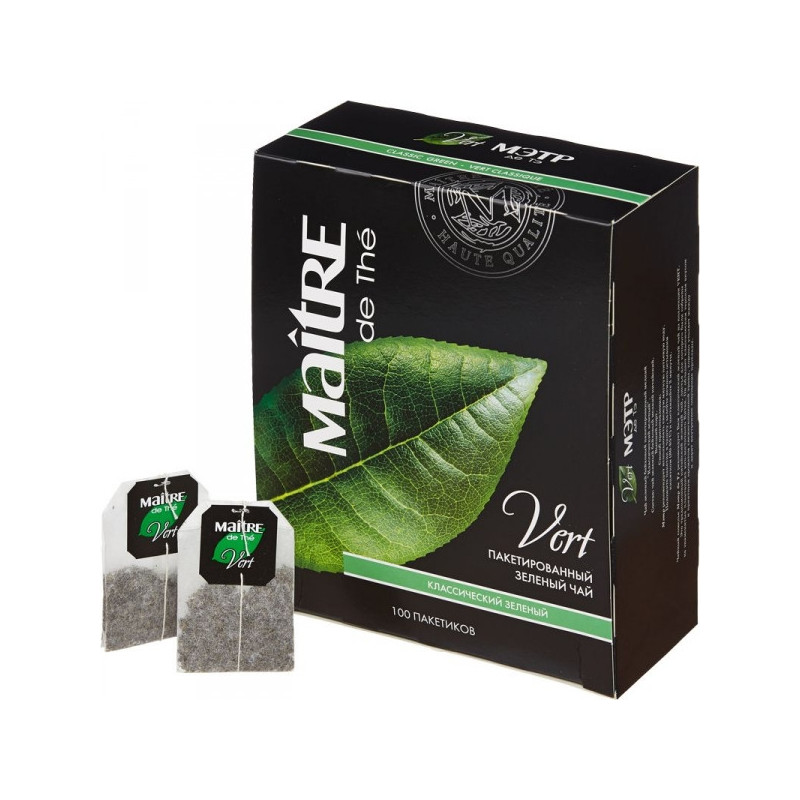 Чай зеленый Maitre de tea Vert предназначен для ежедневного приготовления. Обладает мягким вкусом и нежным ароматом. Поставляется в картонной упаковке по 100 пакетиков весом 200 грамм.