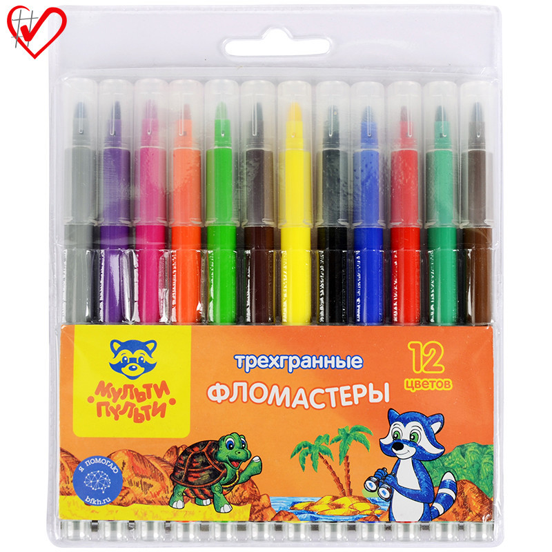 Описание: Трёхгранные фломастеры «Мульти-Пульти» серии «Енот на Сейшелах». Конические тип наконечника имеет толщину линии 3 мм. В наборе 12 цветов фломастеров: серый, фиолетовый, розовый, оранжевый, салатовый, коричневый, жёлтый, чёрный, синий, красный, зелёный, шоколадный. Фломастеры отлично подходят для создания ярких рисунков, поздравительных открыток и плакатов. Они представлены с легкосмываемыми чернилами и вентилируемым колпачком. Корпус круглой формы изготовлен из полипропилена и имеет удобную круглую зону захвата. Фломастеры сохраняют стабильный цвет при письме на протяжении всего использования. Смываемые фломастеры на водной основе нетоксичны. Упакованы в блистер.