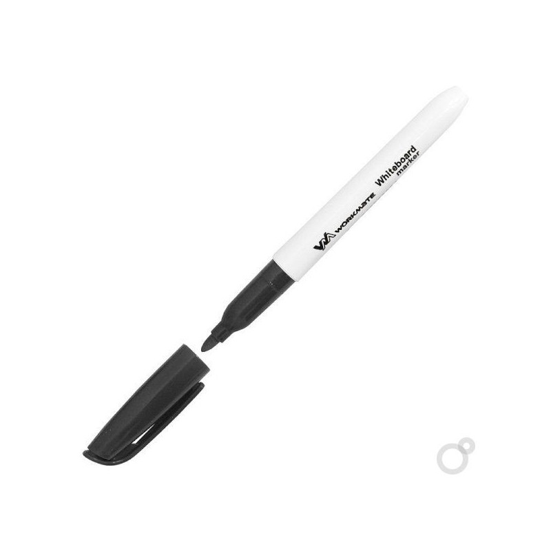 Описание: **Маркер для доски Workmate W-8** предназначен для нанесения наглядной информации на маркерных досках при проведении презентаций, рабочих собраний, обучающих семинаров и тренингов. Оснащен пулевидным наконечником. В зависимости от наклона маркера толщина линии письма составляет 1-3 мм. Чернила на водной основе, имеют яркий черный цвет, легко и быстро стираются. На пластиковом корпусе нанесен индивидуальный штрих-код. В картонной коробке 12 штук