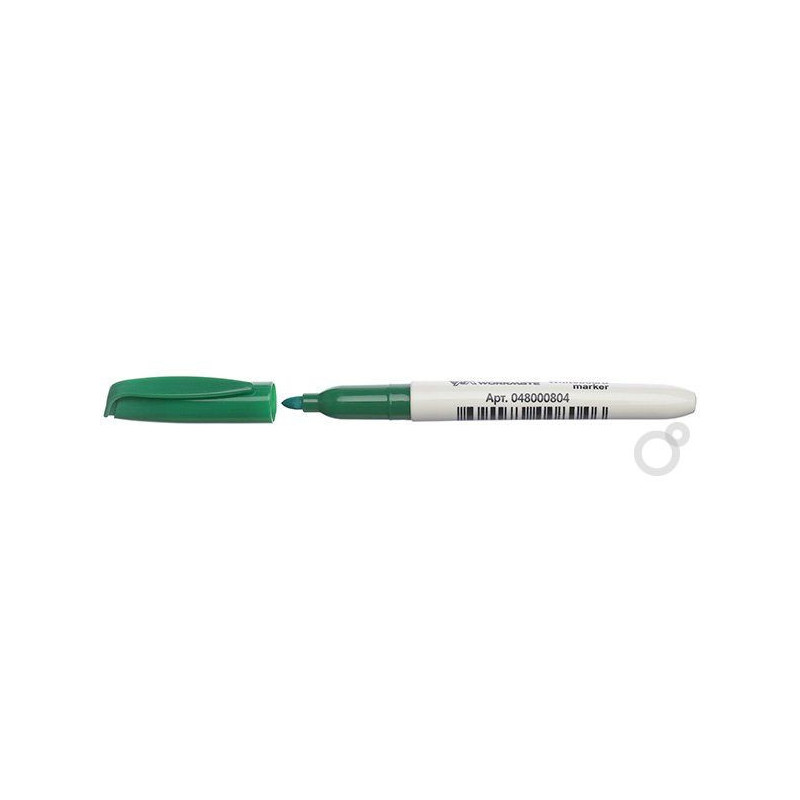 Описание: **Маркер для доски Workmate W-8** предназначен для нанесения наглядной информации на маркерных досках при проведении презентаций, рабочих собраний, обучающих семинаров и тренингов. Оснащен пулевидным наконечником. В зависимости от наклона маркера толщина линии письма составляет 1-3 мм. Чернила на водной основе, имеют яркий зеленый цвет, легко и быстро стираются. На пластиковом корпусе нанесен индивидуальный штрих-код. В картонной коробке 12 штук