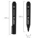 Маркер перманентный черного цвета обладает круглым корпусом, диаметр которого 17 мм и длина 133 мм. Толщина линии письма - 3 мм. Особая нестираемая основа перманентного маркера обеспечивает такие качества, как стойкость к воздействию воды, низких и высоких температур. Благодаря спиртовой основе чернила быстро сохнут и не размазываются. Износостойкий наконечник устойчив к повреждениям и обеспечивает экономный расход чернил. Изделие не перезаправляется. Плотный колпачок с клипом предотвращает высыхание наконечника и чернил. Цвет корпуса и колпачка соответствует цвету чернил.
