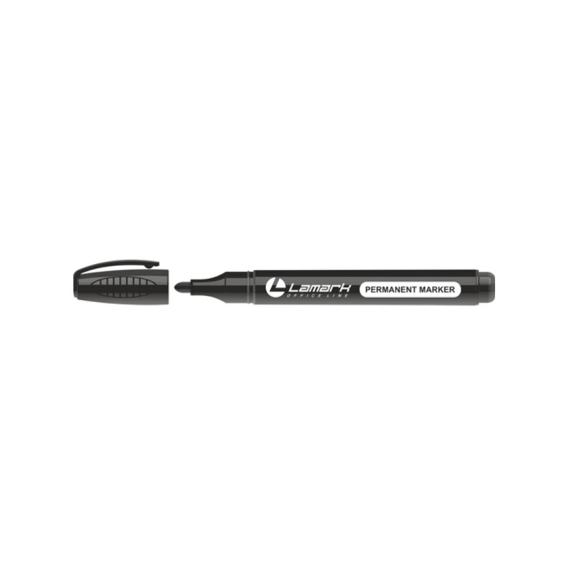 Маркер перманентный Lamark предназначен для письма по любой поверхности. Чернила быстро сохнут, не смываются, свето- и водостойкие. Не содержат токсичных веществ. Цвет черный. Удобный объемный корпус. Толщина линии 3-5 мм. Пулевидный наконечник. Упакованы в картонные цветные коробки по 12 шт./цвет.