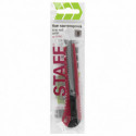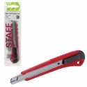Описание: Описание Канцелярский нож STAFF "PRO" — универсальный, удобный и простой инструмент, который применяется во многих сферах: на складе, в офисе, строительстве, производстве, творчестве и дома. Предназначен для резки различных материалов разной плотности и толщины. Благодаря своей обтекаемой форме нож удобно держать в руке. Пластиковый корпус гарантирует безопасность применения. Автофиксатор позволяет закрепить лезвие в нужном положении с помощью защелки. Для того, чтобы хранить и переносить инструмент было проще, в корпусе имеется небольшое отверстие. Нож усиленный с металлическими направляющими, которые надежно удерживают лезвие шириной 9 мм и позволяют выдерживать большую нагрузку. Чтобы восстановить функциональность инструмента из-за затупившегося лезвия, необходимо обломать его по наклонной метке на поверхности лезвия. При этом его нужно выдвинуть только на одно деление. В щель на снятой крышке необходимо поместить затупившийся край лезвия ножа. Инструмент нужно держать в руках таким образом, чтобы лезвие было обращено вверх той стороной, где нет разделительных меток. После этого необходимо согнуть лезвие по линии излома ОТ СЕБЯ. При этом затупившийся обломок остаётся в щели крышки, а инструмент вновь становится пригодным к полноценной работе. Поставляется в нескольких вариантах цвета (без возможности выбора). Данный товар относится к эконом-сегменту. Вскрыть упаковку, коробки, проводить ремонтные работы и многое другое поможет универсальный нож STAFF "PRO", который можно приобрести в нашем интернет-магазине! Характеристики НДС: 20% Ширина лезвия: 9 мм Тип механизма фиксации: защелка Материал корпуса: пластик Наличие металлических направляющих: да Отверстие для подвеса: да Цвет корпуса: ассорти Упаковка: полибэг Вес: 0.0230 кг. Объем: 0.0001 м3. Штрих-код: 4606224233949. Производитель: Китай.