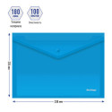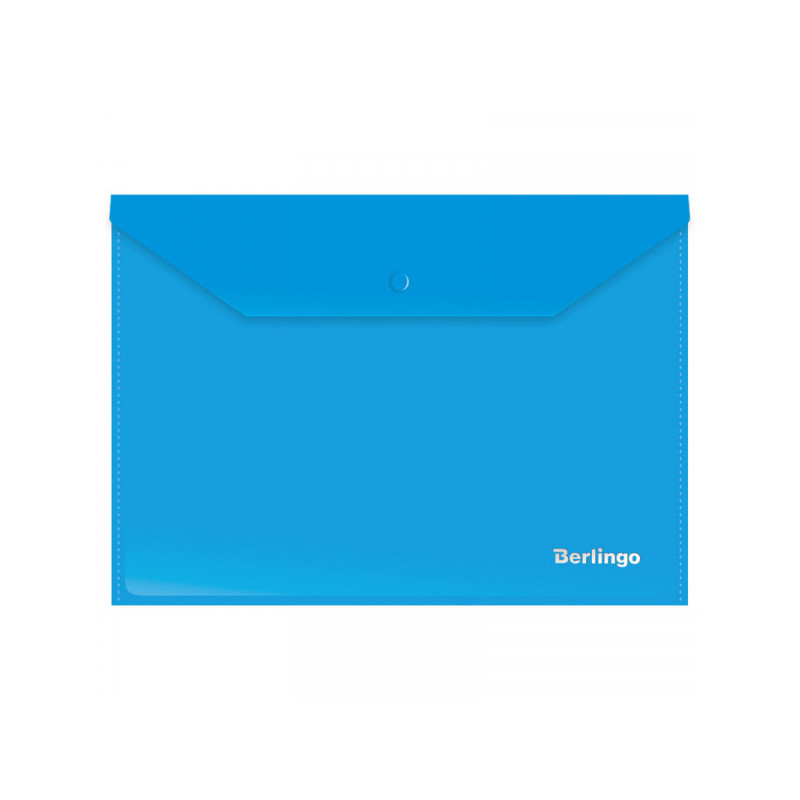 Папка формата A4 на кнопке предназначена для защиты от смятия и загрязнений бумаг и документов при переноске. Изготовлена из пластика синего цвета толщиной 0,18 мм. Имеет треугольный клапан, который предотвращает выпадение документов. Обладает вместительностью до 100 листов стандартной плотность.