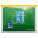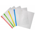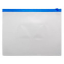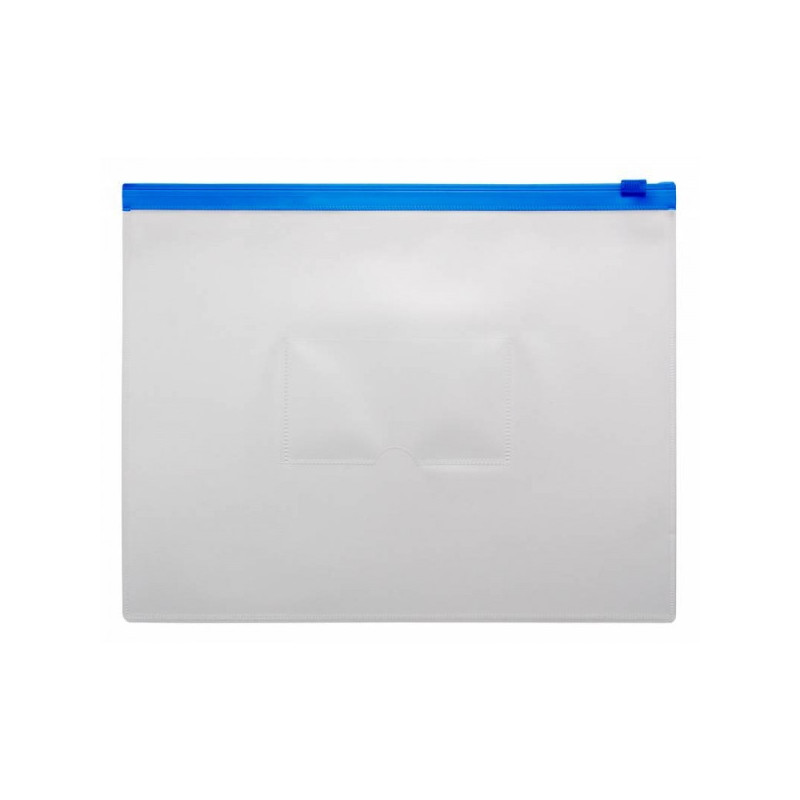 Папка формата А5 на молнии предназначена для защиты от смятия и загрязнений бумаг и документов при переноске. Изготовлена из полипропилена прозрачного цвета толщиной 0,15 мм. Закрывается с помощью Zip-молнии синего цвета. На лицевой стороне есть карман под визитку.