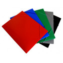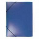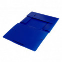 Папка формата А4 на резинках предназначена для защиты от смятия и загрязнений бумаг и документов при переноске. Изготовлена из пластика синего цвета толщиной 0,4 мм. В закрытом состоянии фиксируется двумя резинками по углам. Внутри снабжена тремя клапанами, котрые предотвращают выпадение бумаг. Корешок 15 мм позволяет вместить до 150 листов стандартной плотности.