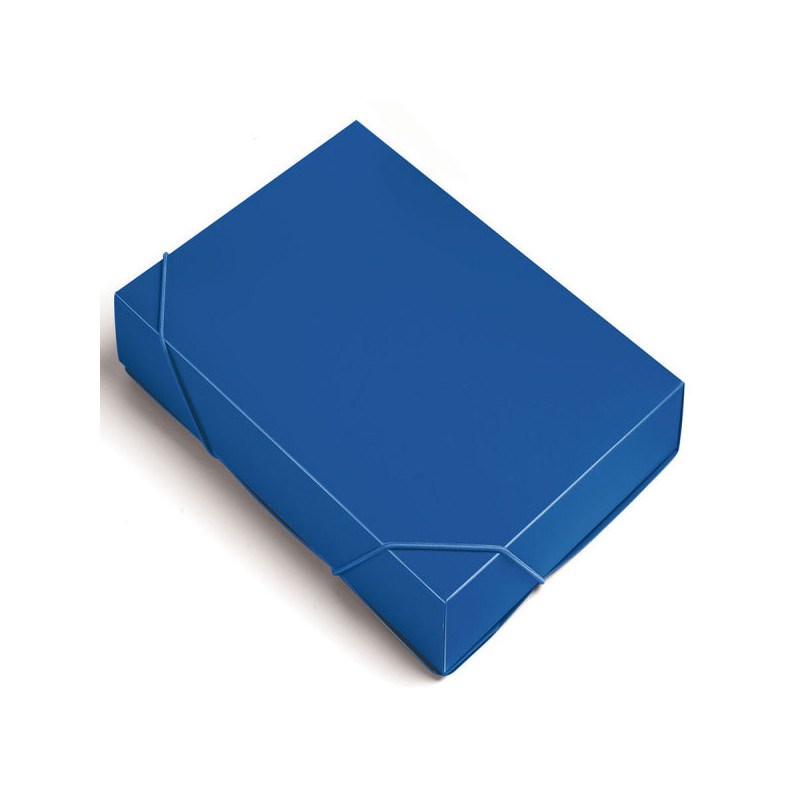 Выполнен из пластика синего цвета. Фиксируется в закрытом виде с помощью резинок по бокам. Ширина корешка 40 мм позволяет вмещать до 350 листов стандартной плотности. Поставка в разобранном виде облегчает транспортировку и хранение короба до его использования.