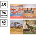 Описание: Тетрадь общая 96 л. на скобе, формата А5 (165*205 мм). Внутренний блок – офсет 60 г/м2, белизна 80%, клетка. Обложка изготовлена из импортного целлюлозного мелованного картона